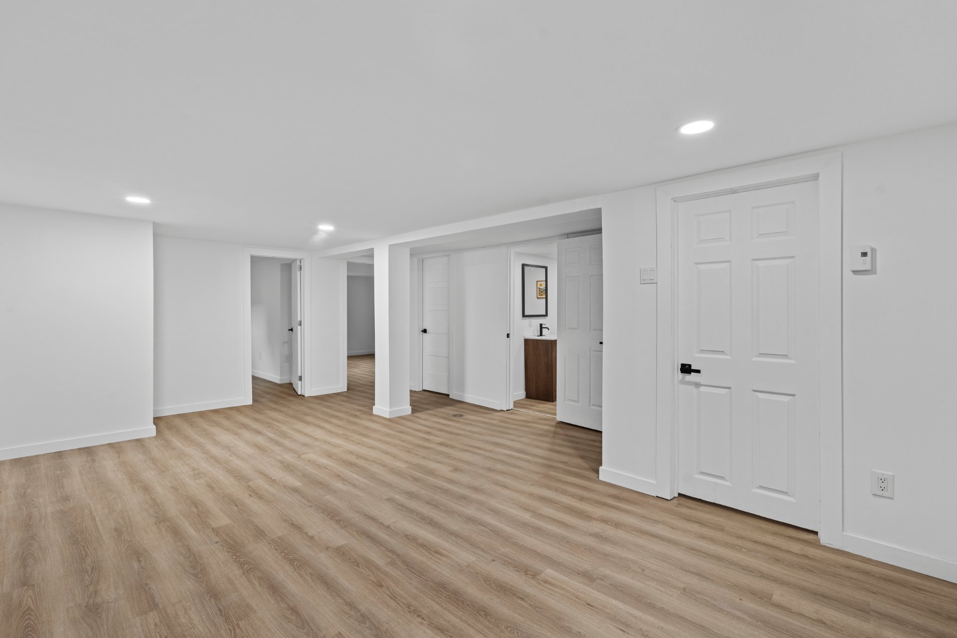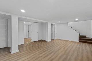 Un sous-sol aménagé, parfait pour une salle familiale, un